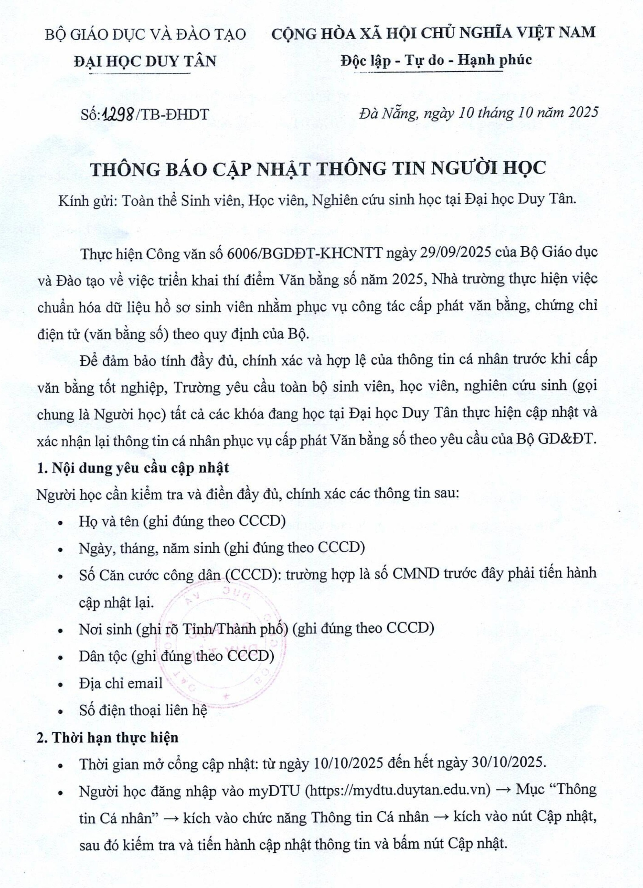 - Thông báo v/v tiếp nhận và xử lý đơn từ học viên, sinh viên