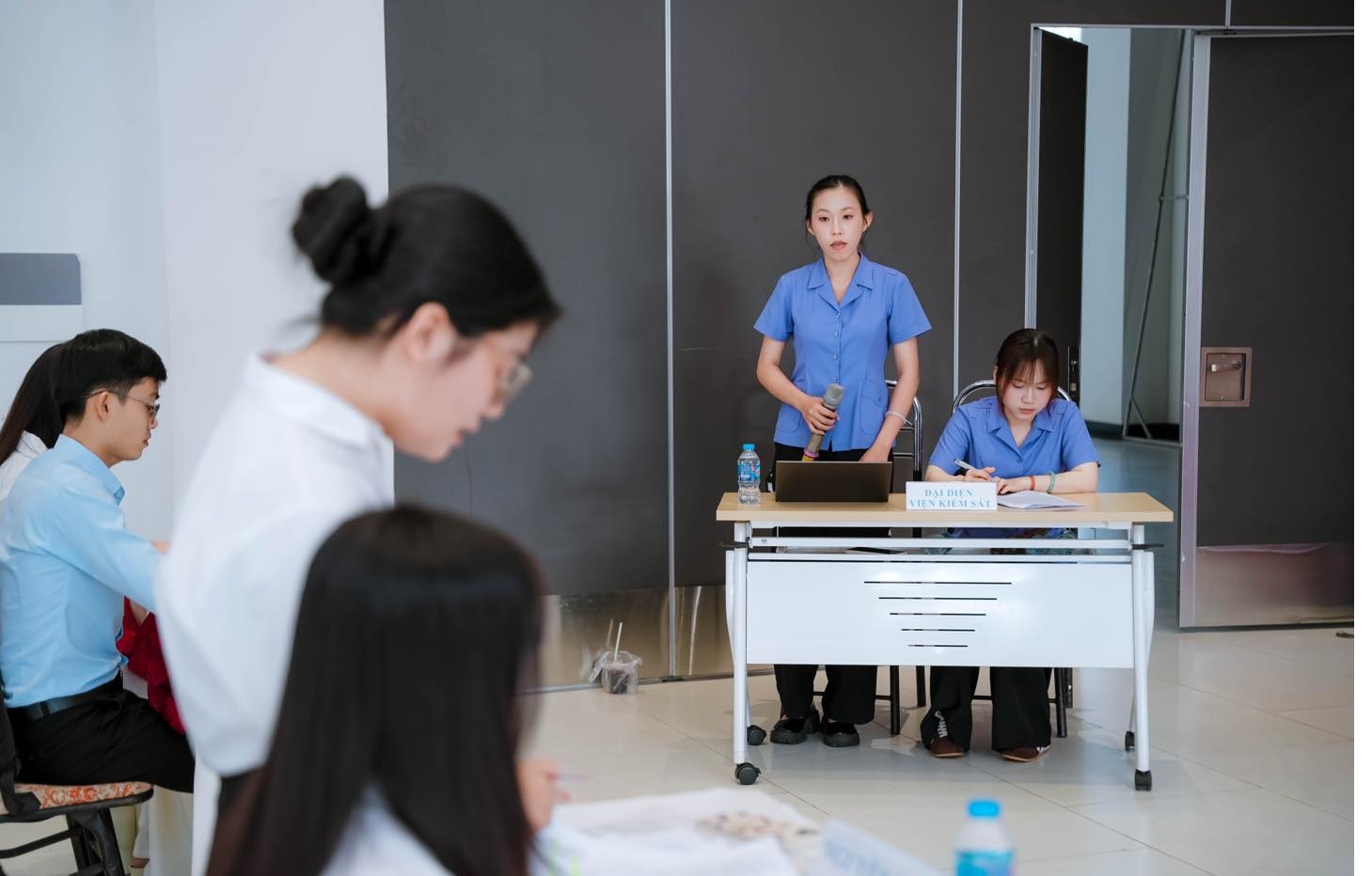 Không gian giảng đường quen thuộc bỗng chốc trở nên nghiêm trang với sự điều hành của Hội đồng xét xử. Đặc biệt, sự tham gia của các chuyên gia giàu kinh nghiệm như Luật sư Lê Thị Xuân Phương (Chủ tọa phiên tòa, nguyên Thẩm phán) đã dẫn dắt các bên đi sâu vào những điểm mấu chốt, giúp sinh viên hiểu rõ tầm quan trọng của chứng cứ và kỹ năng lập luận.