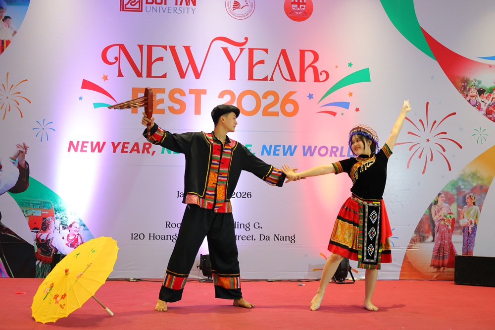 Trong không khí rộn ràng của những ngày đầu năm, ngày 31/01/2026, tại Hội trường Tòa G (Cơ sở 120 Hoàng Minh Thảo), Khoa Tiếng Anh thuộc Trường Ngôn ngữ - Xã hội Nhân văn (NN-XHNV), Đại học Duy Tân đã tổ chức thành công chương trình New Year Fest 2026. Với mục tiêu tăng cường sự gắn kết và tạo môi trường để sinh viên phát triển toàn diện, New Year Fest 2026 đã mang đến một không gian lễ hội đa sắc tộc, phản ánh đúng tinh thần của những công dân toàn cầu tương lai.