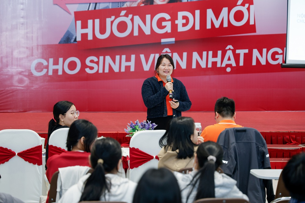 Trong phần chia sẻ, đại diện FPT Software Đà Nẵng đã giới thiệu tổng quan về doanh nghiệp, các dự án hợp tác với thị trường Nhật Bản và nhu cầu tuyển dụng nhân sự thành thạo tiếng Nhật trong giai đoạn hiện nay. Doanh nghiệp đặc biệt nhấn mạnh vai trò của nguồn nhân lực Nhật ngữ trong lĩnh vực công nghệ thông tin - một mảng nghề nghiệp đang có tốc độ tăng trưởng nhanh và nhu cầu lớn tại Việt Nam.